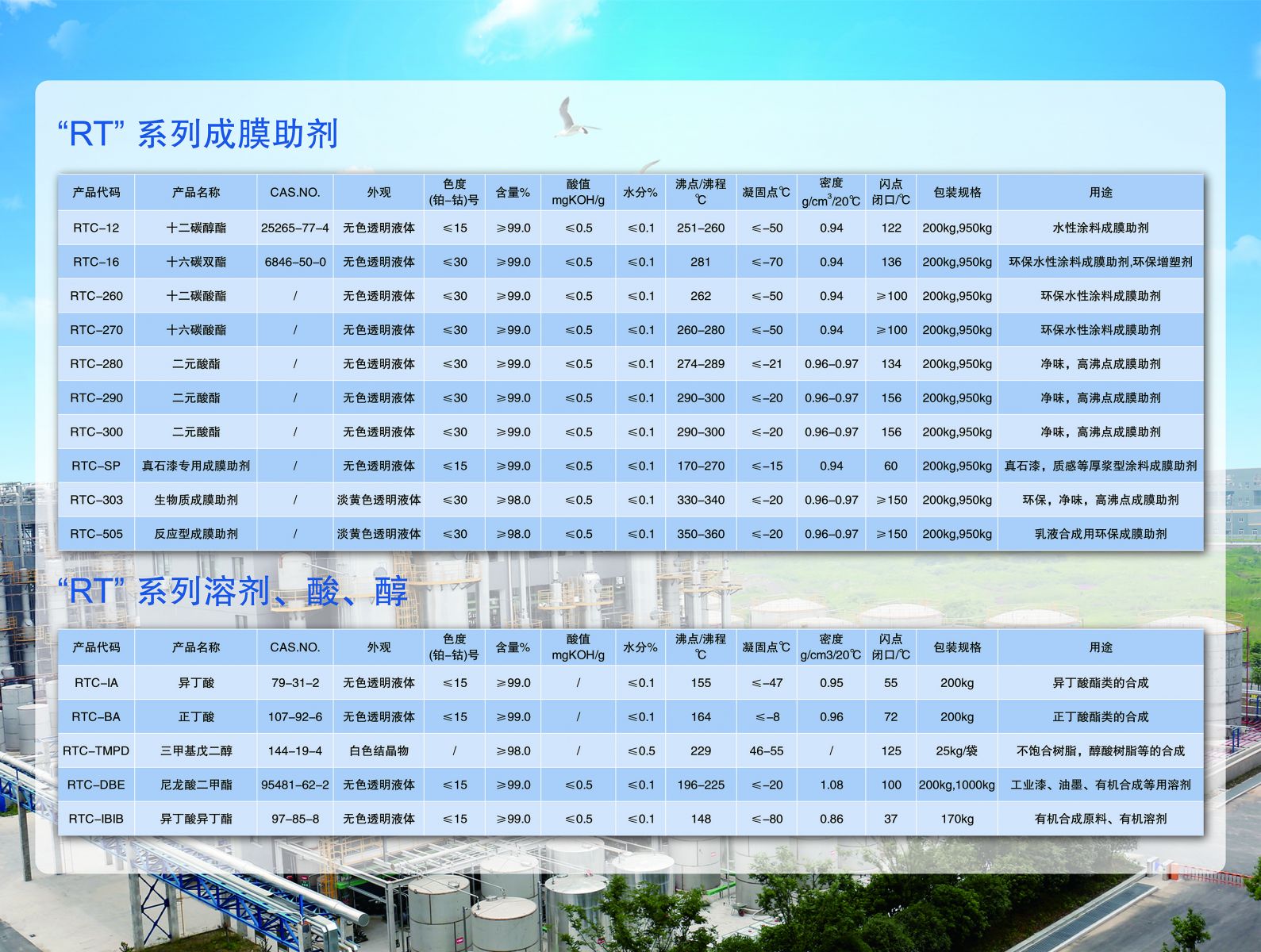 即:1萬噸(dūn)的醫藥中間體,1萬噸的(de)催幹劑,3萬噸的增塑劑、高沸點溶劑,5萬噸(dūn)的“RT”係列成膜助劑。