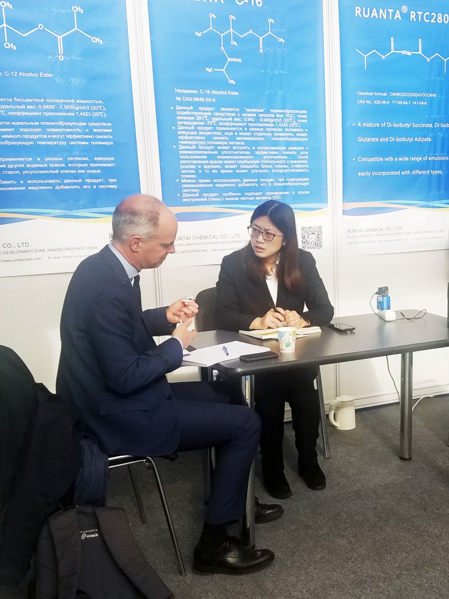成人抖音股份訊 第23屆俄羅斯(sī)國際塗料(liào)展(Interlakokraska 2019)於2019年3月4日(rì)-7日在莫斯科(kē)舉行。該展會是目前俄羅(luó)斯境內塗料行業規(guī)模最大、最權威的專業展覽會。參展商主要(yào)是塗料及其各種原材料(liào)、塗料及塗裝設備等行業的知名企業。潤(rùn)泰化學(xué)股份有限公司(sī)組織國際業(yè)務部精英參加了本次展會(huì)。