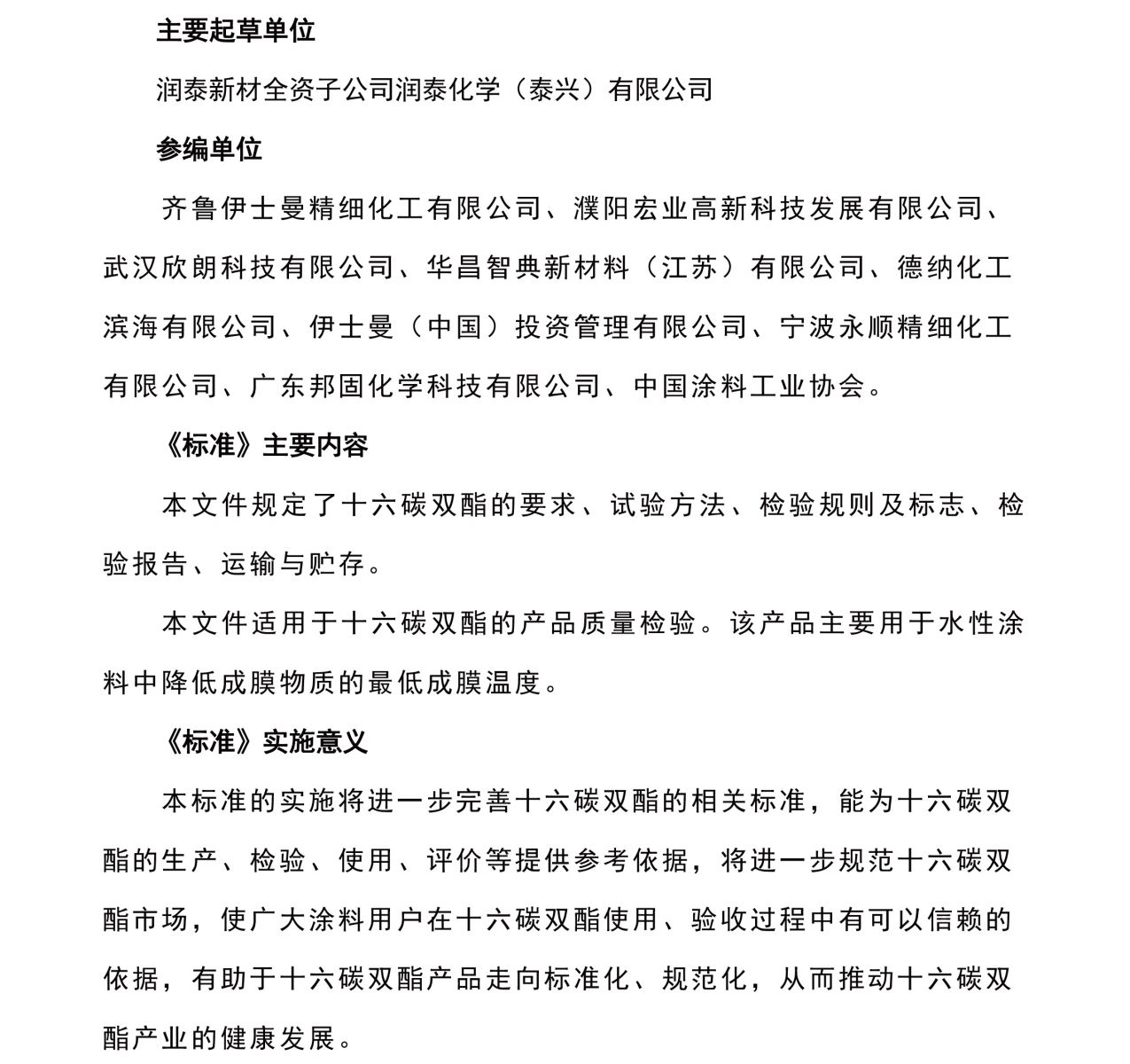成人抖音(tài)新材主起草的T/CNCIA-2021《十六碳雙酯》 團體標準(zhǔn)文件正式公布
